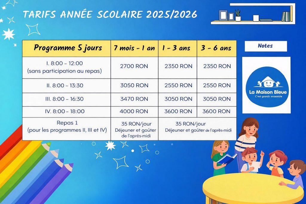 Pour plus d’informations sur les activités et tarifs du club d’été, merci de nous contacter à cette adresse : office@la-maison-bleue.ro